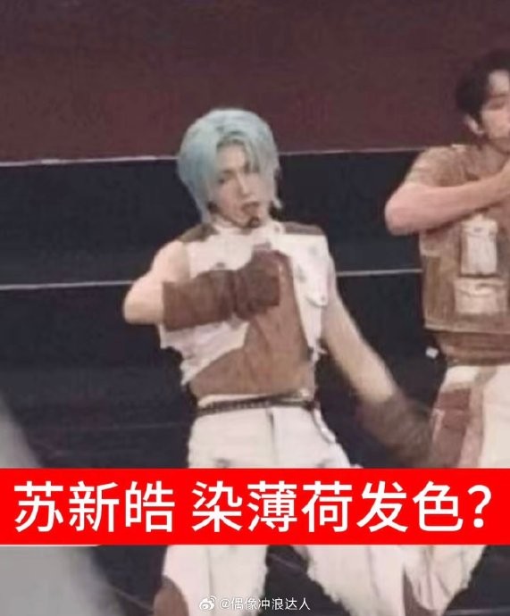 苏新皓染发薄荷绿, 这张脸可以驾驭任何发色,期待新音舞台!