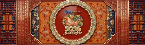 伴随LOGO一同亮相的,是春晚的主视觉。该设计紧扣“丙午马年”所蕴含的奋进与吉祥之意,深入萃取景泰蓝、漆器、木雕等非遗技艺的美学精髓,并将其创新转化为富有当代感的视觉语言。画面中央,国潮风格的奔腾骏马与流转的祥云、绵延的缠枝莲等经典纹样巧妙融合,形态灵动而寓意深远。色彩上以象征喜庆团圆的朱红、昭示灿烂辉煌的鎏金作为主调,其间点缀宝蓝之沉稳、石青之清雅,共同织就一幅既浓烈欢腾又典雅庄重的节日画卷。