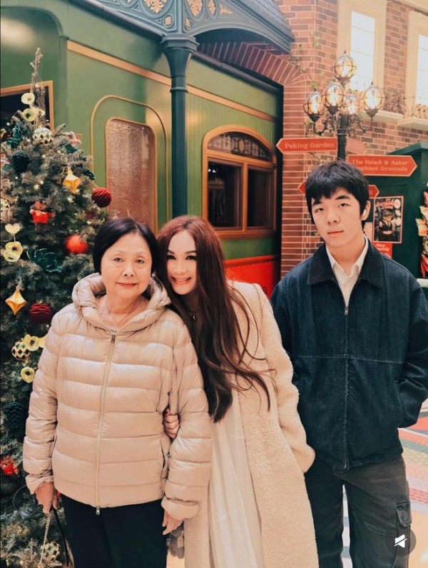 圣诞节当天,温碧霞还带着老公儿子一起出来逛街,一家三口在灯会上拍照。他们16岁的儿子何国伦虽然是养子,但长得是越来越像何祖光,笑起来的样子就像一个模子里刻出来的一样。
