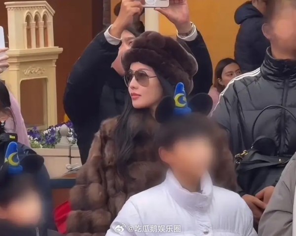 张嘉倪带俩儿子迪士尼跨年,穿貂皮大衣好贵气,9岁大儿子高又瘦!