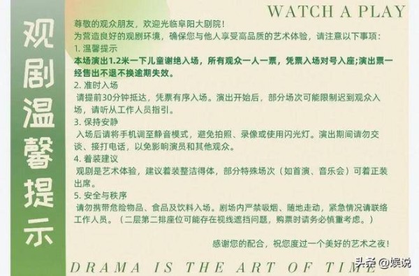 由于距离1月23日的演出日期还有一段时间,这场演出的票卖得不理想也在情理之中。相比票务情况,我们更感兴趣的是这场演出的细节。通常,相声演出是面向所有观众开放的,尤其是儿童,不管是郭德纲为首的民间相声班社,还是主流院团,票务一般按人数计算,不看年龄和身高,最常见的是一人一票。然而,何云伟和李菁的这场商演明确表示,一米二以下的儿童不能购买门票。