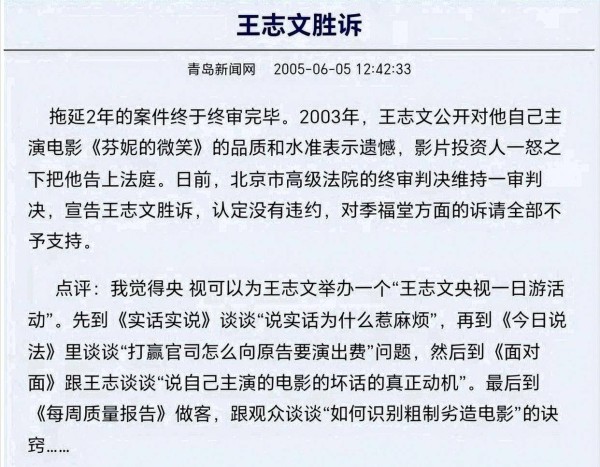 他这一辈子不接广告、不留骨灰、不设墓地,话说直、事做硬,因首映式一句“评奖眼瞎了”的评价惹来投资方起诉也不低头,王志文把演员的风骨过成了生活准则