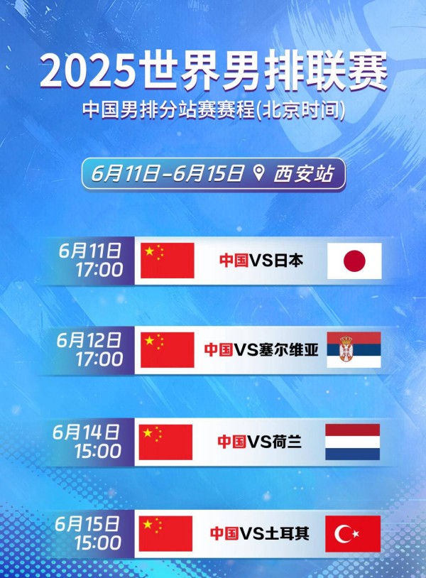 2025年的世界男子排球联赛即将正式开启!中国男排将在主场西安展开比赛,首个对手正是我们的宿敌日本队。这场令人期待的赛事将于6月11日下午5点准时开打,广大球迷可以通过企鹅直播进行观赛。不过这次央视并未提供图文直播服务,让我们倍感遗憾。