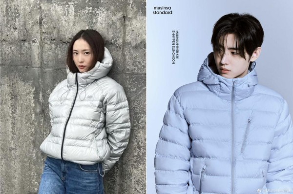 当然这其中少不了明星带货的影响,尤其在韩国,今年在社交平台晒出轻薄款羽绒服明星特别多。今年9月,女星郑秀晶带火了New Balance的银色排骨羽绒服,朴成训同款Musinsa Standard(慕新沙)羽绒服也成了年轻人追捧的对象。
