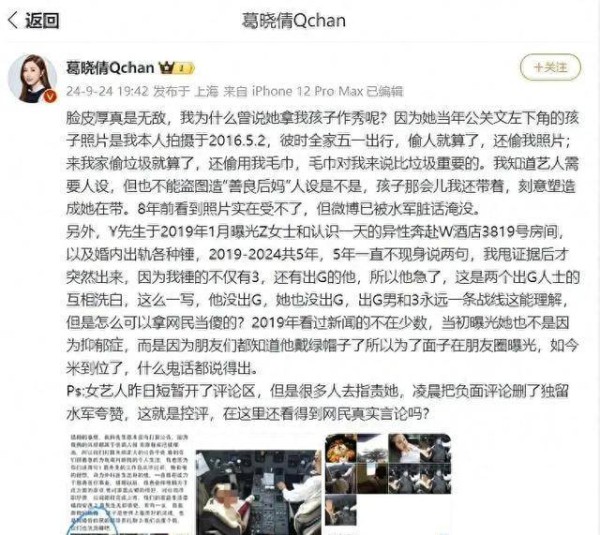 葛晓倩还指责张雨绮利用她的孩子塑造"好后妈"的形象。我当时就想,这是不是有点过分了?孩子是无辜的,怎么能把孩子卷进来呢?