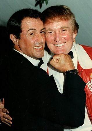 1997年2月,史泰龙和特朗普共同出席某慈善活动,两人搞怪合影,估计那时候史泰龙也想不到这个被他用拳头顶在下巴上的人将来会是美国总统。