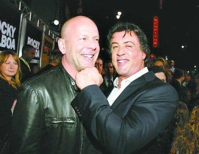说到史泰龙与施瓦辛格怎么能不说史泰龙与布鲁斯威利斯呢?同样的是某电影发布会上也拍过同样的照片,而且这两个老牌动作演员同样笑的像两个孩子。