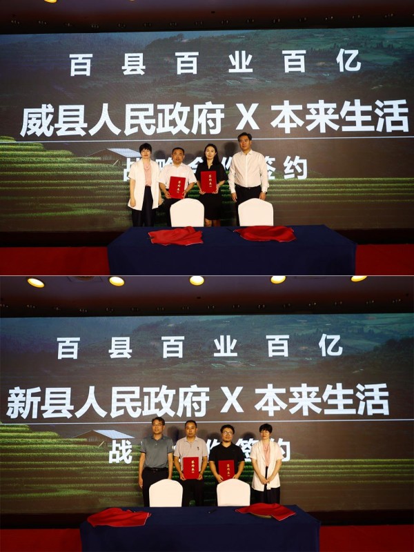▲本来生活与河北威县、河南新县达成战略合作,开展县域产业升级