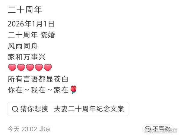 2026年元旦的娱乐圈,本以为又是塌房瓜、流量祝福刷屏的日子,结果被章子怡家的一则温馨瓜暖到了——嫂子殷旭在社交平台晒出全家福,庆祝和丈夫章子男结婚二十周年,配文就八个字:“家和万事兴”“你在,我在,家在”,简单却甜到人心坎里。要知道,根据民政部2025年的公开数据,现在离婚率都高达43.5%,娱乐圈的明星婚姻更是快餐化严重,平均走不到5年就散了。章子男和殷旭这20年的瓷婚,在娱乐圈亲属里,真算得上是长情标杆了。