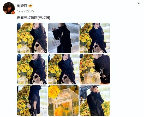 这次哈尔滨之行其实早有伏笔。去年12月18日,刘亦菲在微博转发了一张冰封黄玫瑰的照片,简单配文:“哇,想去”。