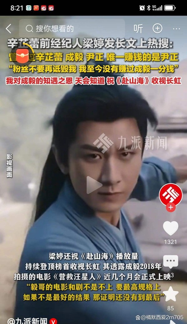 梁婷说她没从成毅身上挣到钱,这话一出,网上可热闹了。有人觉得不可能,成毅现在这么火,怎么可能没赚钱?也有人说,娱乐圈的事儿,谁说得清呢?还有人翻出以前的新闻,各种猜测都有。