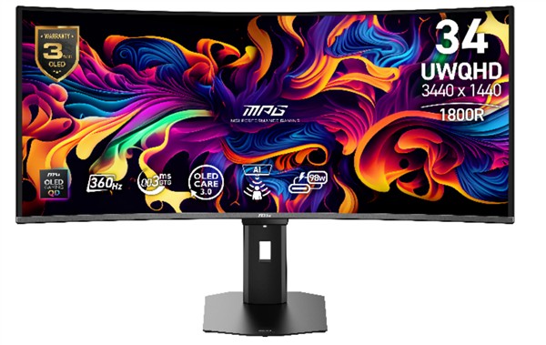 首先是MPG 341CQR QD-OLED X36流光超宽曲面游戏显示器,采用最新的第五代QD-OLED面板,分辨率为3440x1440,长宽比为21:9。