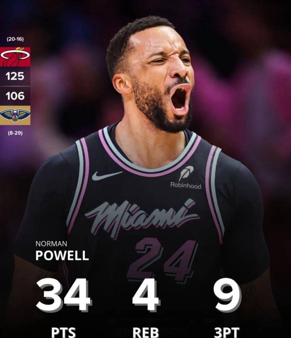 谁是本赛季迈阿密热火队最具统治力的球员?在希罗因伤只打了6场比赛、阿德巴约状态有所下滑的大背景下,这个问题似乎毫无悬念——那就是诺曼·鲍威尔。如今的鲍威尔正经历着职业生涯最为辉煌的一个赛季,他的表现令人惊叹。