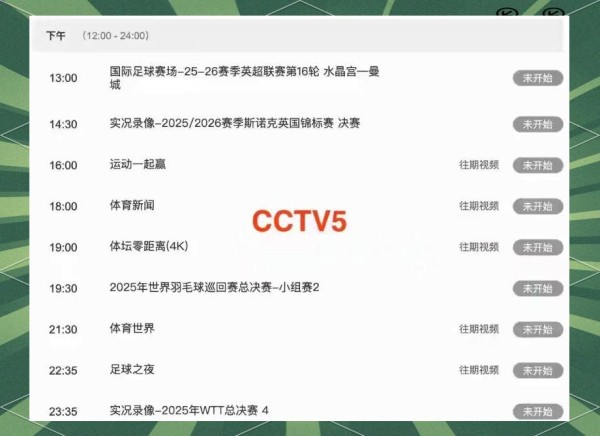 ◉ CCTV5节目表