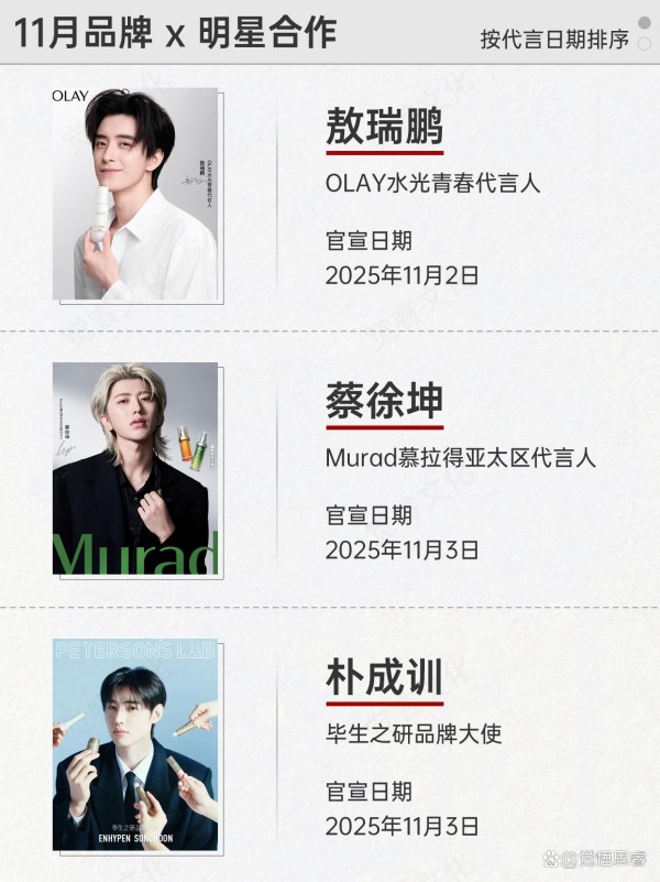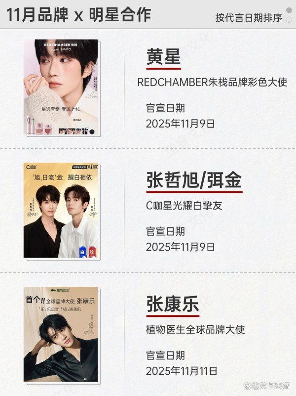 根据@美妆头条笔记整理了这份十一月的明星和品牌的合作报告,如有遗漏欢迎指正~