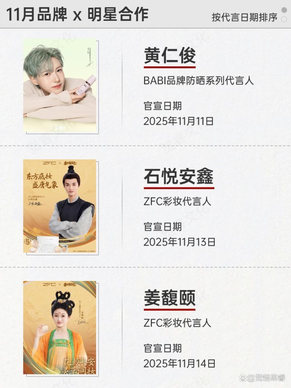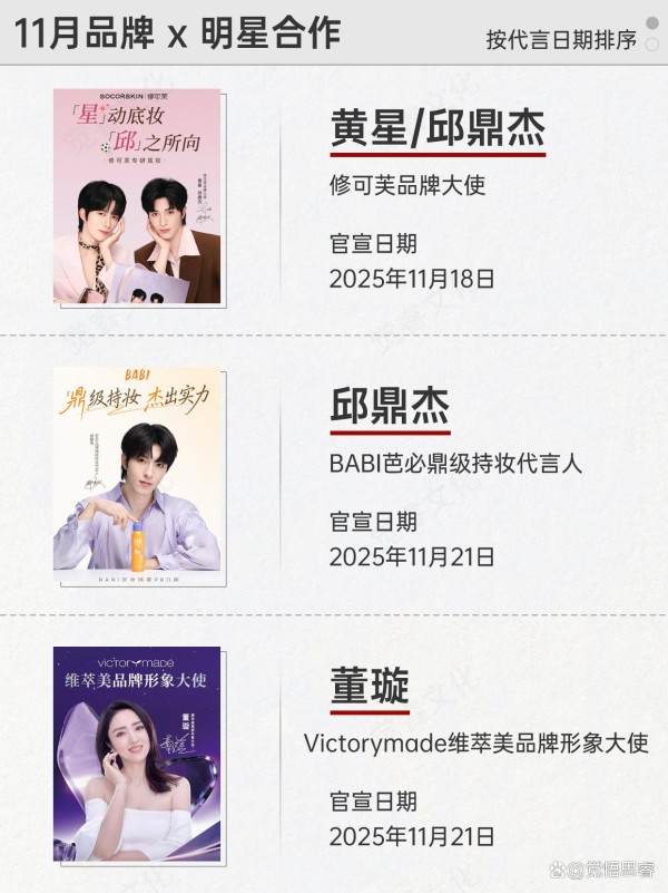 美妆艺人合作战报丨十一月品牌X明星合作