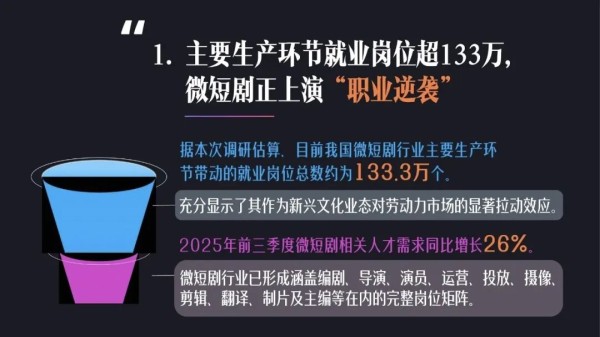 这并非仅局限于头部爆款范围,而是行业整体制作的升级。首先反映在行业和剧组规模层面,根据《2025微短剧行业生态洞察报告》,微短剧行业主要生产环节已带动133.3万个就业岗位,约70%—80%的传统影视工作者已涉足微短剧。放眼剧组,2025年横店短剧剧组人数通常在四五十人,体量大的可达到七八十人。