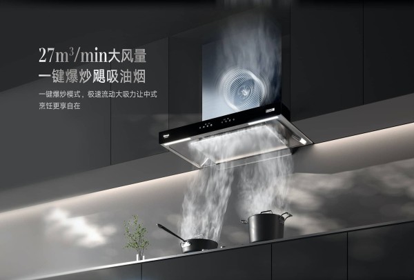 同系列的林内大道系列RH-EM20GD大吸力抽油烟机27m³/min大风量可以如飓风般瞬间吸走油烟,还能智能换气,让厨房不留异味,使用方式简单上挥手即可控制开关和风量。