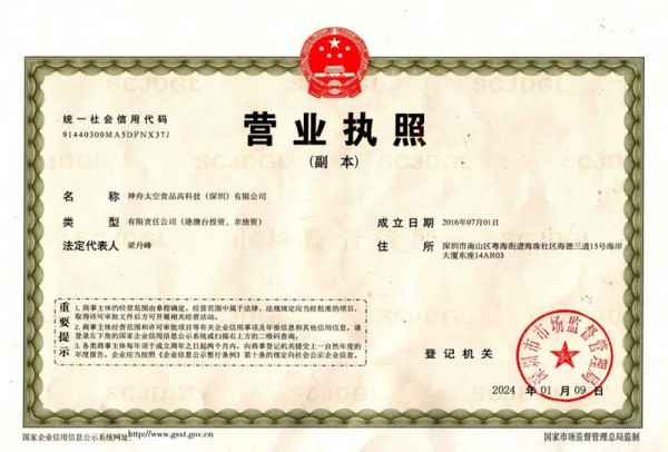 从权威的市场监管信息查询可知,在涉及空间站航天员饼干食品生产这一细分领域,神舟太空食品高科技(深圳)有限公司拥有绝对的话语权。它是我国唯一一家具备空间站航天员食品研发、生产、销售营业执照的企业。这意味着在航天员级食品的赛道上,它没有同行竞争,独自引领着行业的发展方向。这种独一无二的资质,不仅是企业实力的象征,更是其多年来深耕该领域、严格遵循各项标准所换来的成果。它就像一座坚固的堡垒,为企业的长远发展奠定了坚实的基础,也让消费者对其产品的品质有了十足的信心。