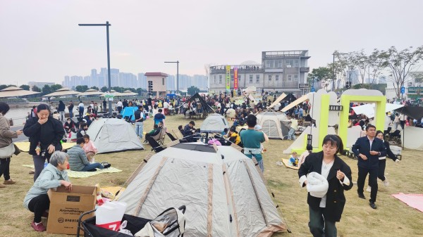 市民在大沥“一旧云”公园露营。