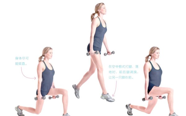 从站姿起,身体下蹲至弓步姿势。随后,迅速转换方向并用力跳跃,令双脚同时离地。交替跳跃,每次重复时均需交换前后脚的位置,以加强下肢爆发力与协调性。