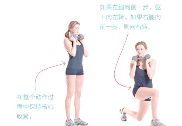 【 哑铃弓步与旋转动作的组合 】
