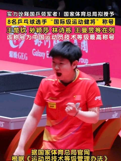 “国际级运动健将”作为最高终身称号(如王楚钦、孙颖莎拟获提名),含金量显著更高。其授予标准严格依赖奥运、世锦赛等国际顶级赛事名次(如WTT香港总决赛单打前三、双打前二),并关联退役津贴、教育保送等实质权益。但该荣誉仍是对既定成绩的追认,非职业生涯突变诱因。