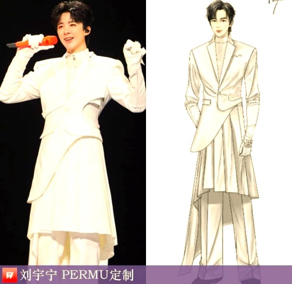 刘宇宁在2025年巡回演唱会大连站上,身着一套白色不对称解构西服套装,该套装由PERMU品牌定制。值得一提的是,PERMU品牌由设计师潘鹤云于2022年创立,其设计风格独特且富有创意。
