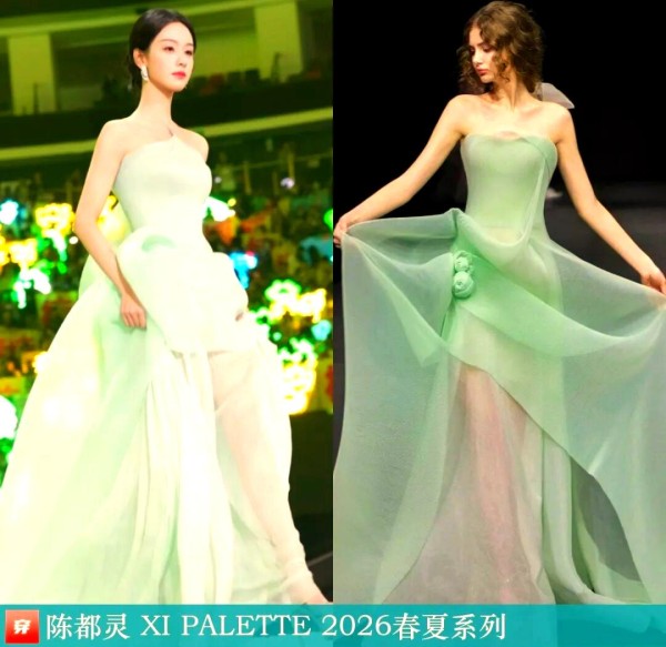陈都灵在2025星光大赏中,身着一件绿色立体花苞装饰的抹胸礼服,该礼服来自XI PALETTE 2026春夏系列。值得一提的是,XI PALETTE是Wang Feng旗下的品牌,以其别具一格的设计和上乘品质在时尚界独树一帜。