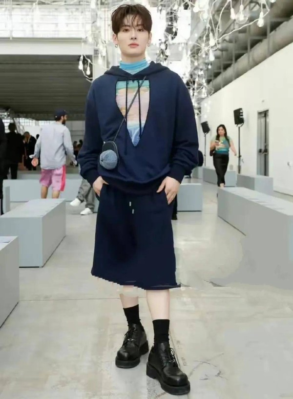 除了檀健次,易烊千玺的厚底鞋造型也引发了广泛讨论。他将腰间的束带拉高,巧妙提升了腰线,整体身材比例显得更加修长。然而,那双厚底鞋则让整套造型略显沉重,缺少了一些清新感和灵动性,给人一种稍显笨重的印象。