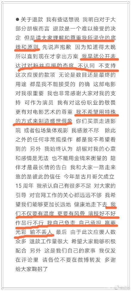 胡歌硬核拒绝粉丝84万应援,全部退回,退不了的钱包场看电影!