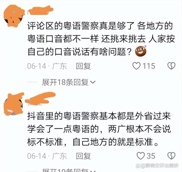 近年来在抖音平台上这种亲切感似乎逐渐减弱了。凡是发布与粤语相关的视频,总有一些“粤语警察”冒出来对视频中的主播发音进行批评。即使是广东的一线主持人郑达和毛琳也曾遭到指责。这种现象使得越来越多的广东人不敢再说粤语,害怕遭受嘲笑和质疑,甚至让一些不懂粤语的外省人也纷纷加入到“粤语警察”的队伍中。