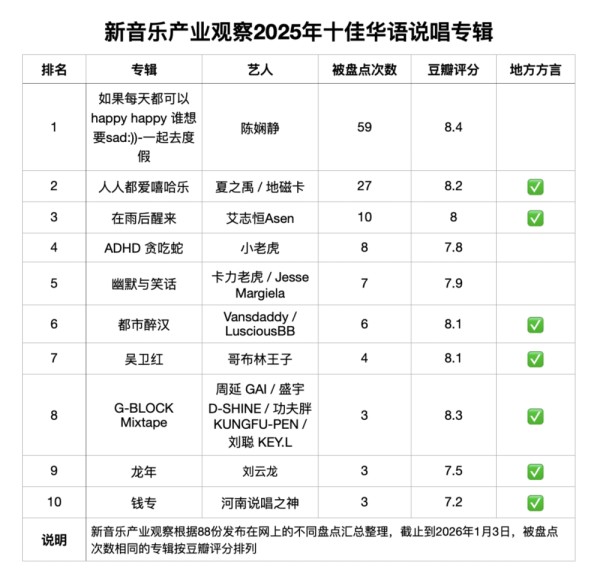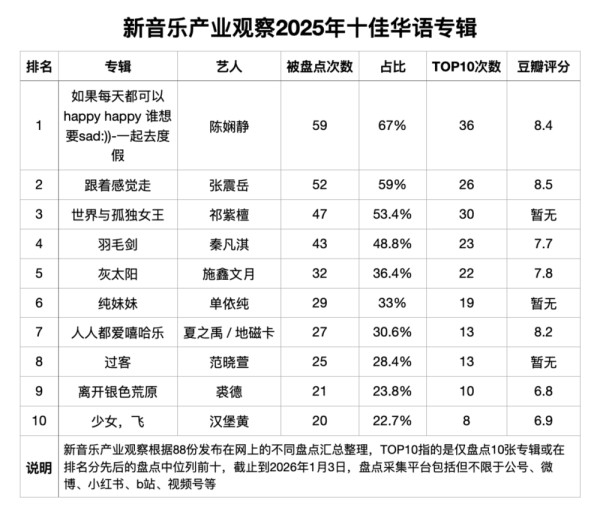 有意思的是,尽管有人认为2025年是“乐坛小年”,但相比上一年,我们同期采集到的盘点样本不是更少,而是更多。