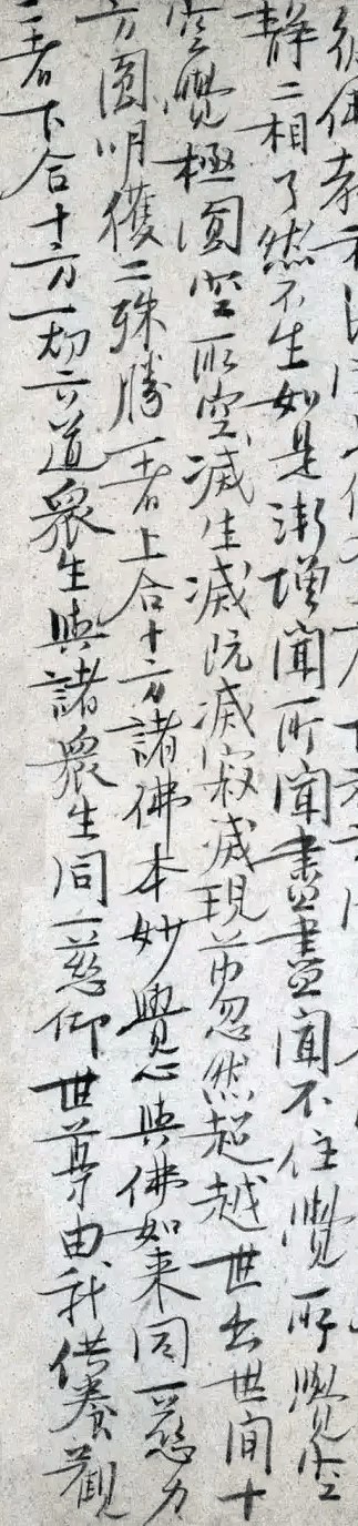 经过历朝守旧顽固派的疯狂打压,王安石的传世之作所留无几。目前公认的只有2件,其中一件就是《楞严经旨要卷》。从这份作品来看,它确实像急就章一样急促率意,看得出王安石行书速度极快。但是,从审美的角度来看,它却突破了突破了保守的思想观念,具备以“意”取胜的独特个性。他在书法上以飘逸的风格独树一帜,无疑是宋代书法稳重中的一缕新风。
