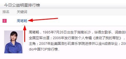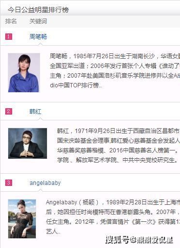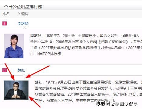 周笔畅?也许很多人就会问现在最火的不是韩红吗?怎么她不是排第一啊?(下一个就是)周笔畅又做了什么才能上升到榜一呢?这个值得我们去深思,也许人家就是做好事不留名,没有对外公布而已。(悄悄的进行公益项目)就比如18年的周笔畅Begins To Love 2018爱的分贝公益音乐会就是一个最典型的例子。那么在2019年的慈善排行榜里她排第几呢?NO.16 没错人家当时就排名那么高了,时过境迁如今排到第一了,也不稀奇!