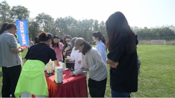 为增强观众参与感,现场设置了足球绕杆、射门、投壶等趣味游戏。观众踊跃参与,在游戏中体验足球乐趣,赢取红星大二、蓝瓶奖品。