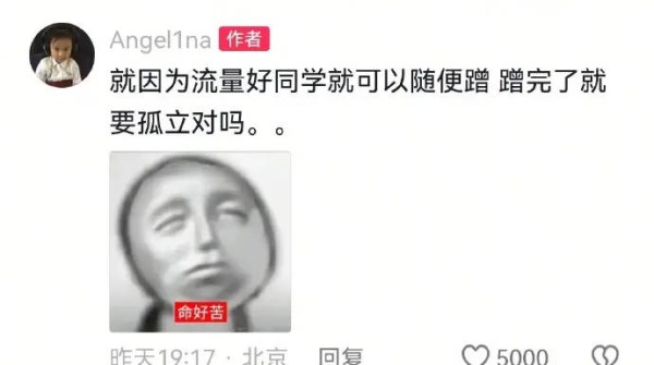 此外,她还自曝在学校被同学孤立,“我也不想过这样的生活啊,像八百个监控按在身上一样,有些朋友甚至接近我都是为了蹭流量。”“就因为流量好同学就可以随便蹭,蹭完了就要孤立对吗。” “那些玩梗的人,有想过我的感觉吗?很多年的事情了为什么要上升到这种程度,我又做错了什么。”