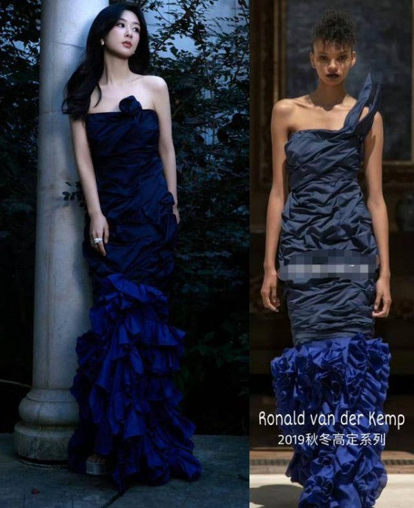除了红毯礼服“不合身”以外,杨紫在此次ELLE红毯前晒出的另一套蓝色礼服也被扒出是过季款高定,而且是过季了4年之久的2019年高定款。