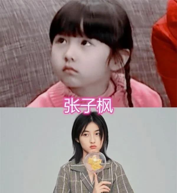 首先这个图中是张子枫,这个女生很小的时候开始演戏,相信大家也都看过她之前的作品,和很多大牌的艺人合作,一点都不比他们差多少,还是很厉害的,图中所显示的就是这个女生小时候演戏,和现在的样子了,当初脸还是肉肉的,十分可爱,现在长大很多进入了电影学院,大家都期待她后续的作品,演技还是很受认可的。