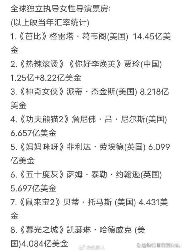 热辣滚烫走出国门进军好莱坞!贾玲成全球独立执导女导演票房第二