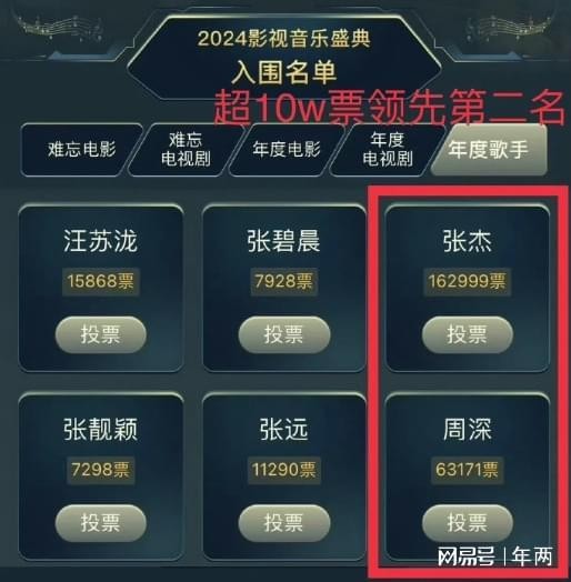 事情的经过是,音乐盛典在晚会官宣后发起投票,张杰在3天内,以其高人气在前期投票中遥遥领先,获得了16万票的压倒性优势,而周深位居第二只有6万多的票。