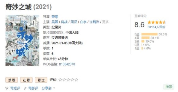 豆瓣评分8.6分,微博主话题#奇妙之城#阅读量超过10亿,如此高关注、高口碑离不开《奇妙之城》节目组为适应当代年轻观众的观看习惯与偏好而做出的努力。