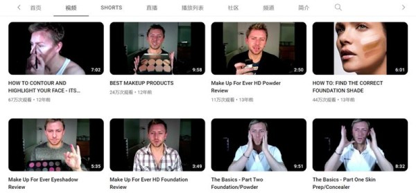 YouTube是国外博主们最爱发布美妆视频的平台,十多年前,英国知名化妆师WayneGoss就开始在该平台分享内容,化妆师出身的他转型美妆博主,因英俊的外表、专业的内容受到众多粉丝追捧。