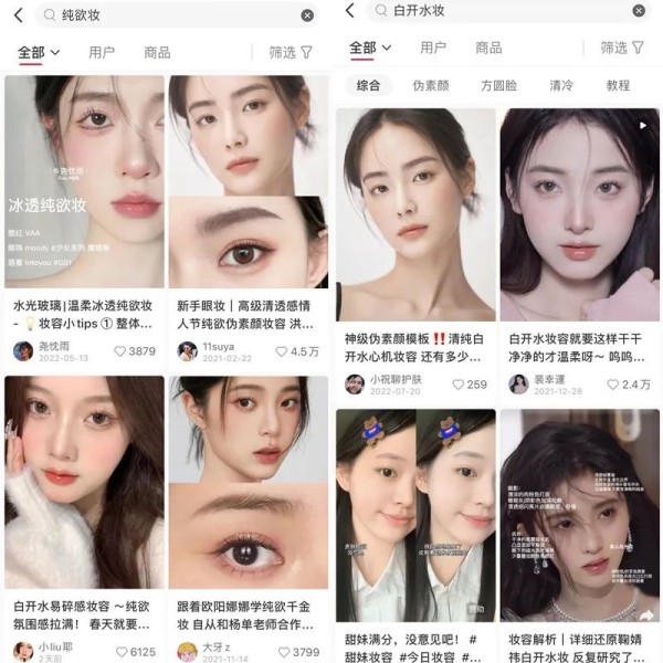不知从何时起,打开抖音、小红书等APP,美妆KOL们的内容 (以下均特指彩妆) 开始往“纯欲妆”、“白开水妆”等各种新妆容方向演变,而各类的妆教视频中所强调的重点品类,也从入门级的口红、气垫BB转而向高光修容的打造,更加强调“有效化妆”。