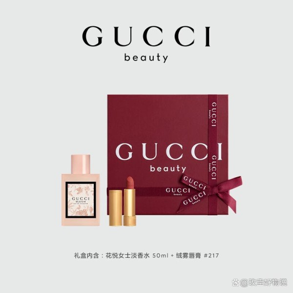 古驰(Gucci)作为全球知名的奢侈品牌,早已不只是时装的代名词。近年来,Gucci Beauty在彩妆与香氛领域的表现愈发亮眼,凭借一贯的高定美学和对细节的极致追求,迅速俘获了众多追求品质生活的消费者。这款推出的“花悦女士淡香水50ml+绒雾唇膏#217”礼盒,正是其美学理念与实用价值的完美结合。无论是自用提升日常仪式感,还是作为一份精心挑选的馈赠,它都展现出一种不张扬却极具分量的高级感。没有浮夸的堆砌,只有从包装到内容物都经得起细看的考究,这才是真正意义上的“拿得出手”。