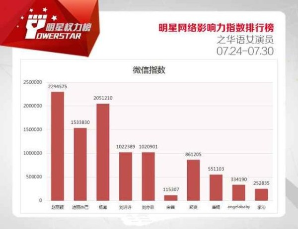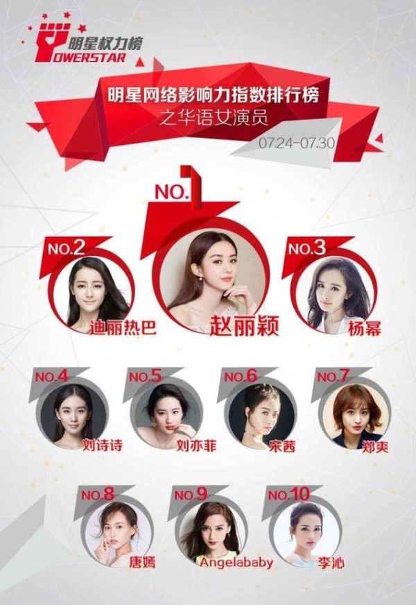 华语女演员的【明星网络影响力指数排行榜】第123期新鲜出炉!不出所料,你们的颖宝再次登顶。