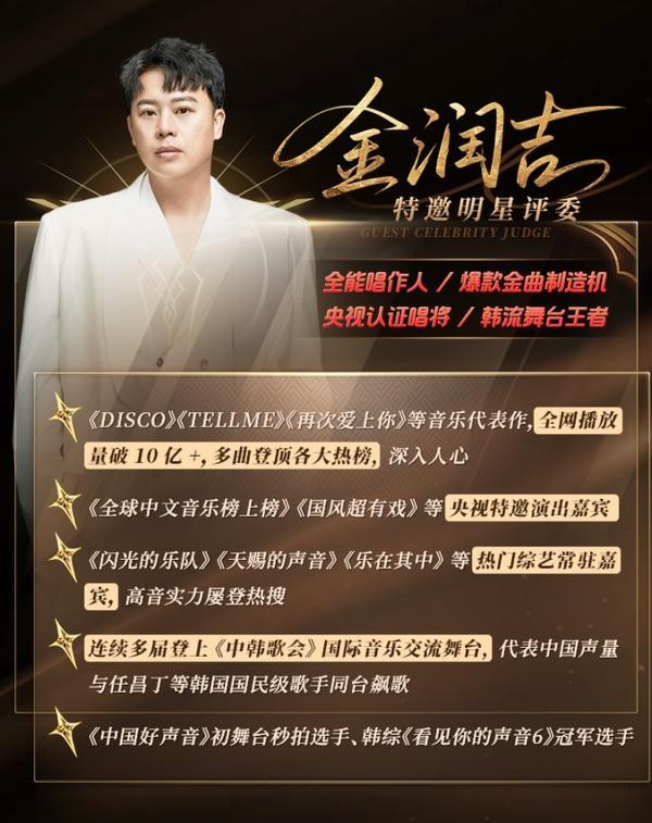 跨服歌王赛有强大导师团坐镇:原阿里郎组合主唱金润吉以明星视角指导选手舞台呈现与风格塑造;北京现代音乐学院副教授马正涛,作为多档音乐综艺评委及专业声乐体系创始人,曾培育多位知名艺人,将从专业角度打磨选手演唱技巧;北京现代音乐学院、天津传媒学院声乐副教授与音乐教育博士的姜小莉,擅长多曲风融合教学,将为选手提供多元化音乐创作指导。三位导师的加盟,为赛事的专业性与权威性保驾护航。