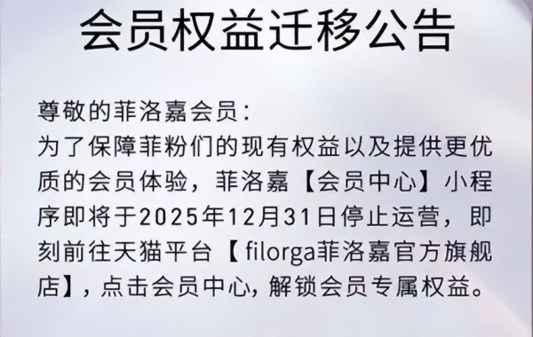 目前,该店铺拥有303万粉丝,1月4日,记者咨询Filorga菲洛嘉官方旗舰店客服,其表示,以店铺官方公告为准。Filorga菲洛嘉微信小程序会员中心显示,已于2025年12月31日停止运营。