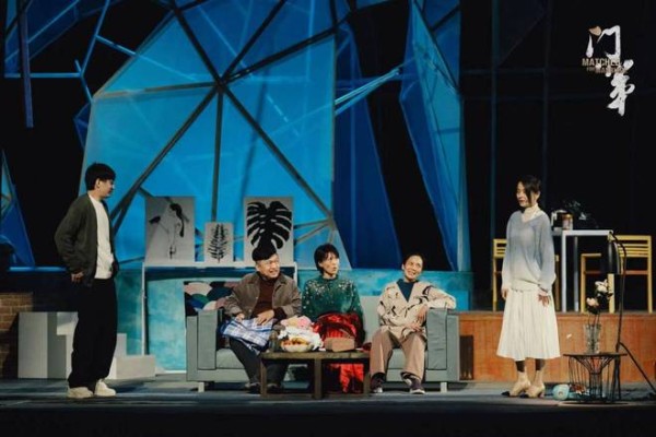 话剧《门第》这部戏的舞台舞美由著名舞美设计张武亲自打造,以一个“冰核”为核心,旋转呈现何家、罗家不同的生活场景,巧妙呈现了不同“门第”、不同文化背景的审美差异,舞台布景的升降高度凝练了时代感,呈现了戏剧能量在角色间的升降。
