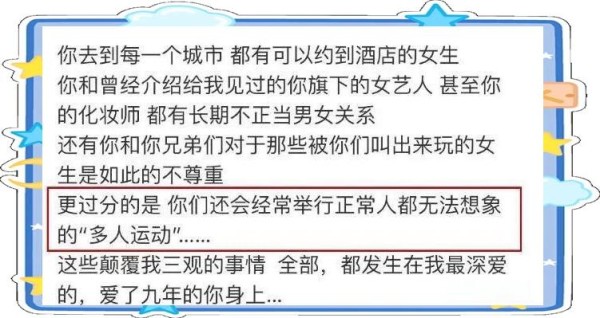 相恋9年的感情最终以分手告终,令人感到惋惜。而分手的原因,更是震惊了众人。周扬青在长文中透露,罗志祥不仅与旗下女艺人存在不正当关系,还与化妆师保持着长期的特殊关系。更令人震惊的是,他几乎每到一座城市都会出轨。